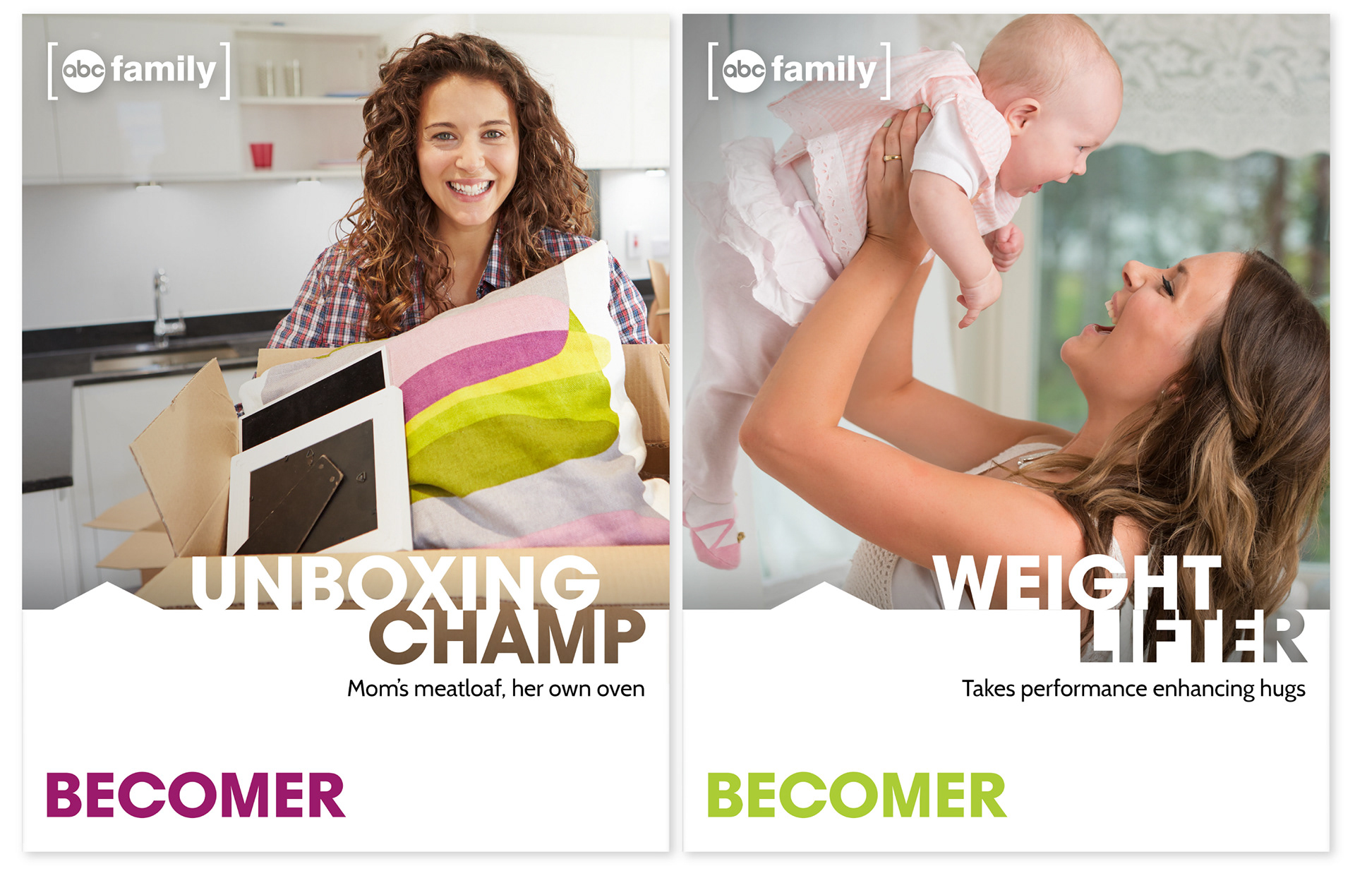 Prior to transitioning to Freeform, ABC Family wanted to create some buzz on the upcoming rebrand. While at Broadstreet, I art directed and designed the concepts that were presented for the "Becomers" Trade Campaign. Throughout a series of ads in trade publications, out-of-home print, digital experiences, and events, e wanted to show ABC Family "becoming" something new, and how they could bond with audiences going through big changes themselves. All concept work property of Broadstreet NYC (www.broadstreet.com)