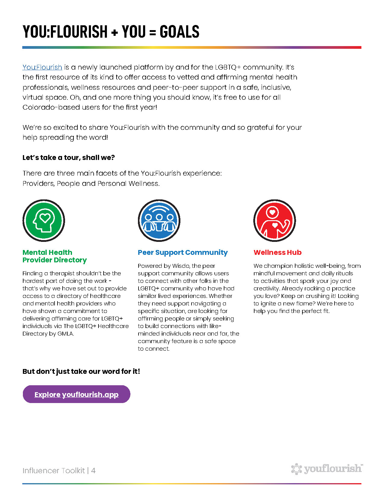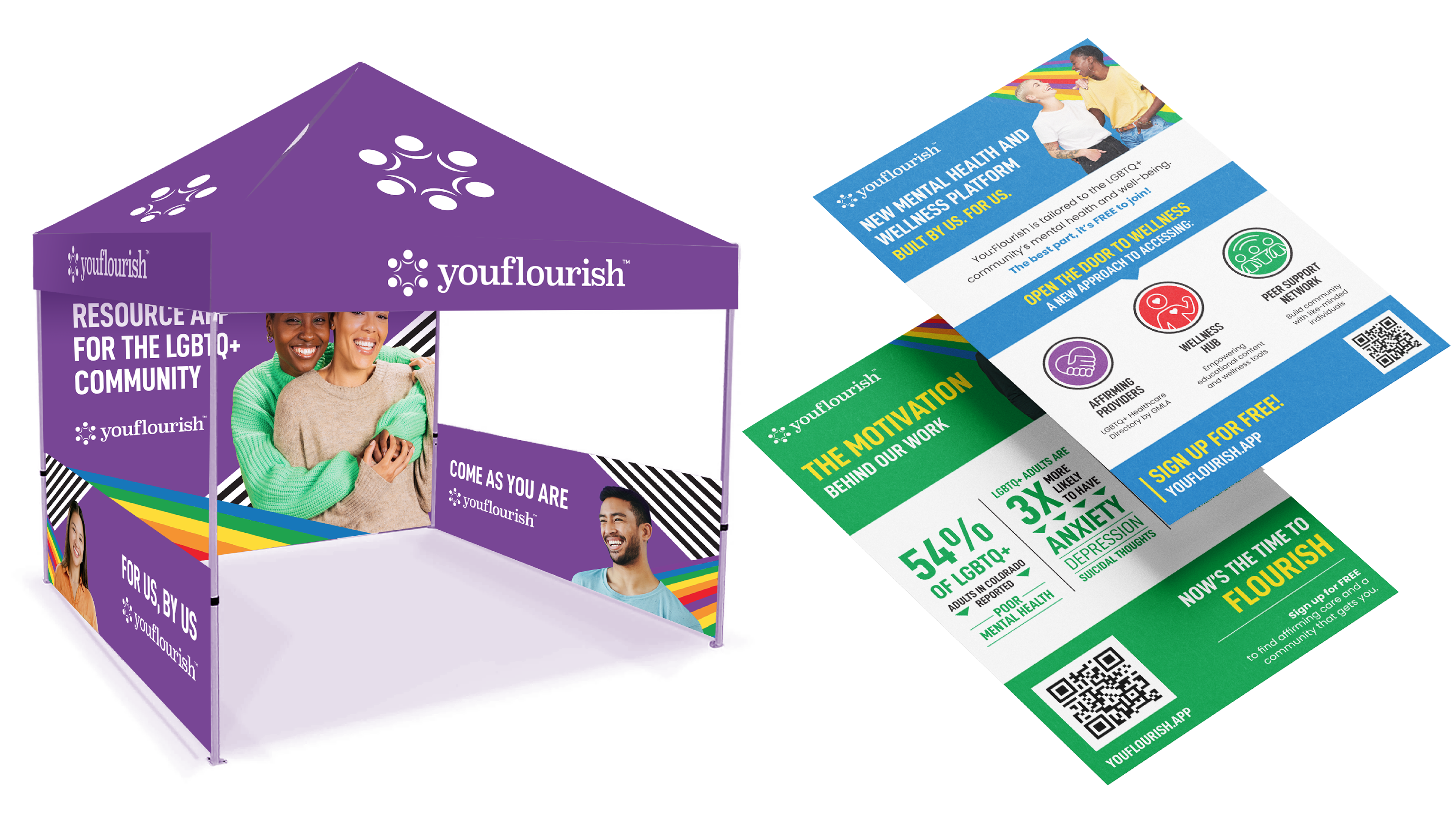YouFlourish was the first mental health platform designed by the LGBTQ+ community for the LGBTQ+ community. I worked at Communications Strategy Group on the launch of the platform through digital activation and in-person events. The work included social media, paid digital, event collateral — and a cross-channel video awareness campaign called, “Living Portraits.”